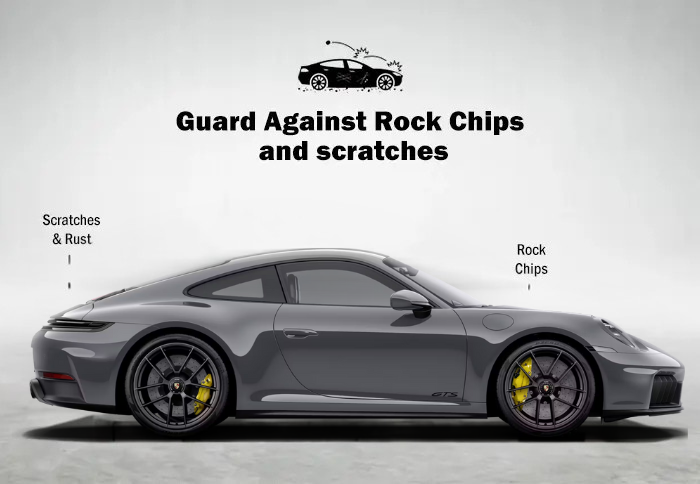 PPF acts as a shield against rocks, gravel, and debris on the road.